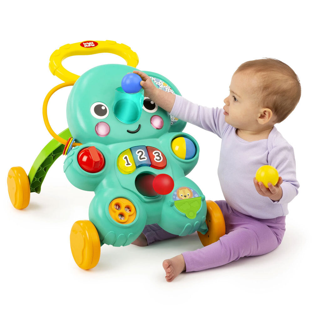 The Stroll 'n Roll 2-in-1 design from Bright Starts combines the playfulness of a sit-and-play toy with the adventure of a push-behind walker; get years of joy with this grow-with-me gear