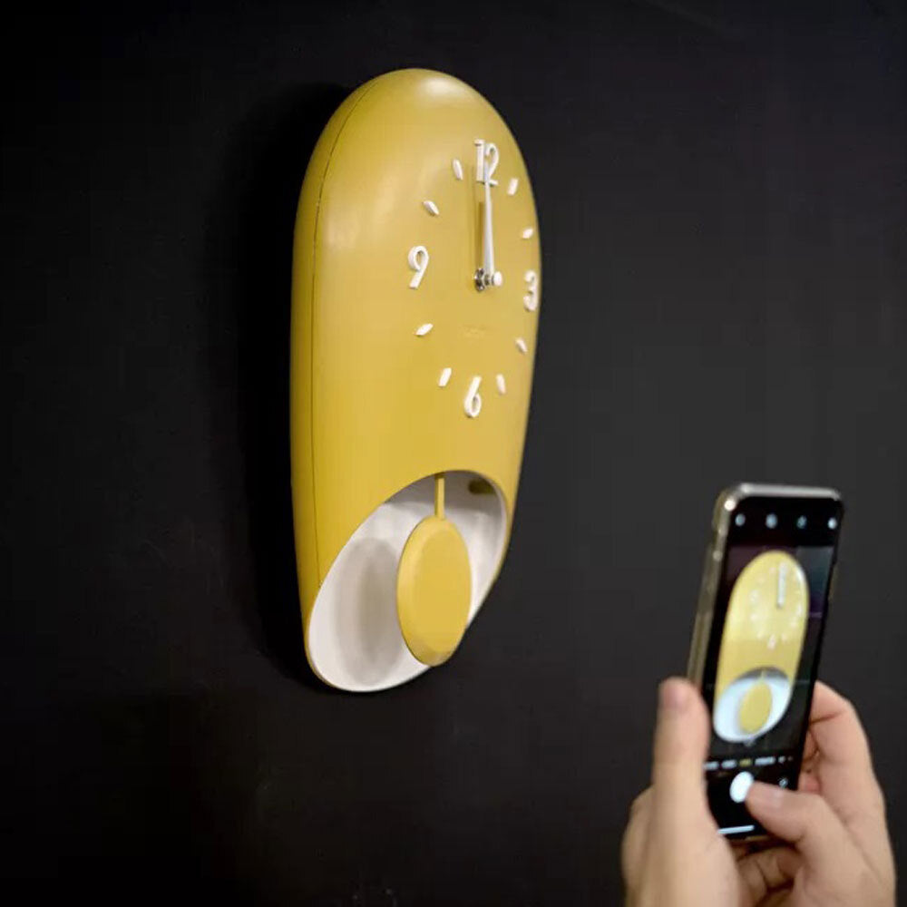 BELL is a pendulum clock with an attractive, reassuring rounded shape, featuring the continuous, even motion of its pendulum. Ideal in the kitchen or living-room, it is also suitable for a kids' bedroom or in an office with a contemporary design scheme.