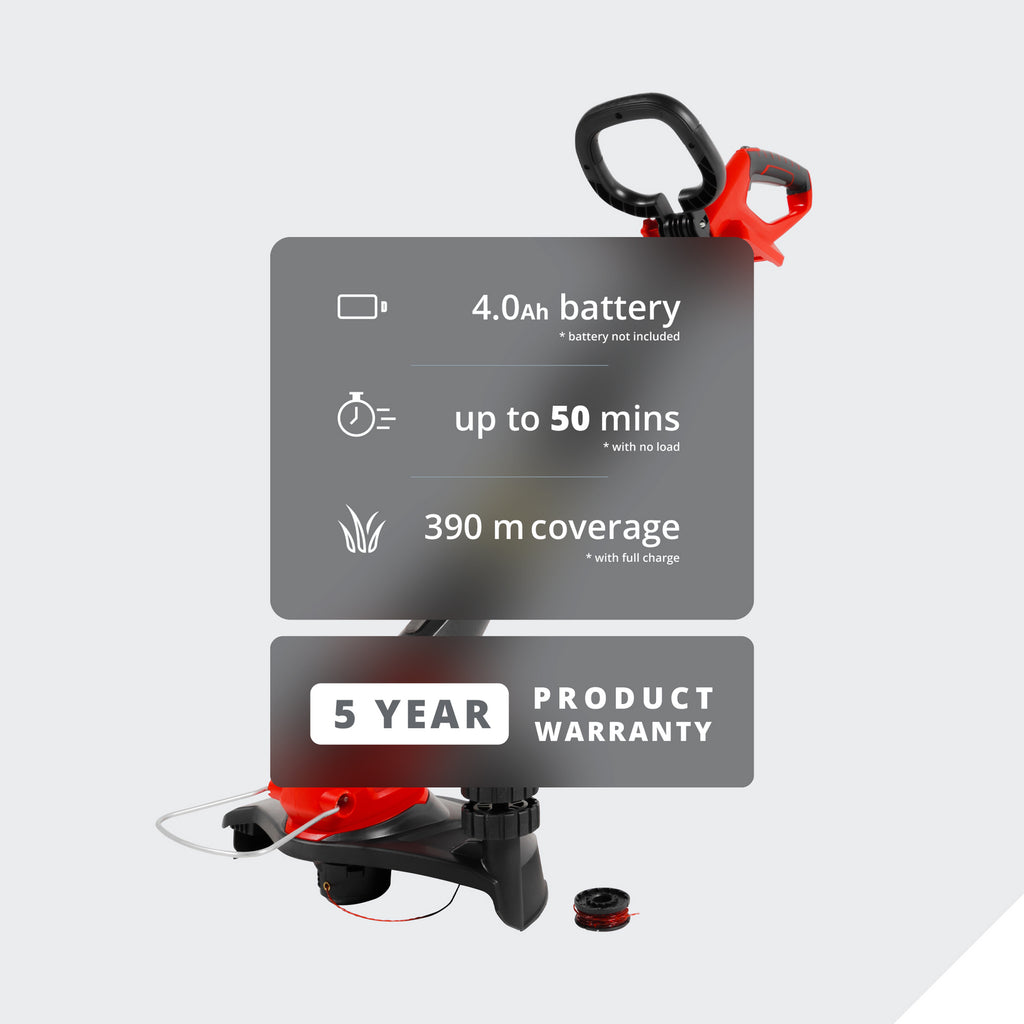 Powered by Briggs & Stratton 18V Lithium-Ion Batteries (available separately) this trimmer gives you the ultimate flexibility and features, making any grass trimming and edging job easy. Trimming approx 390m of yard (up to 50 mins runtime) on a single charge it is simple to change from trimming to edging with just a push of a button.