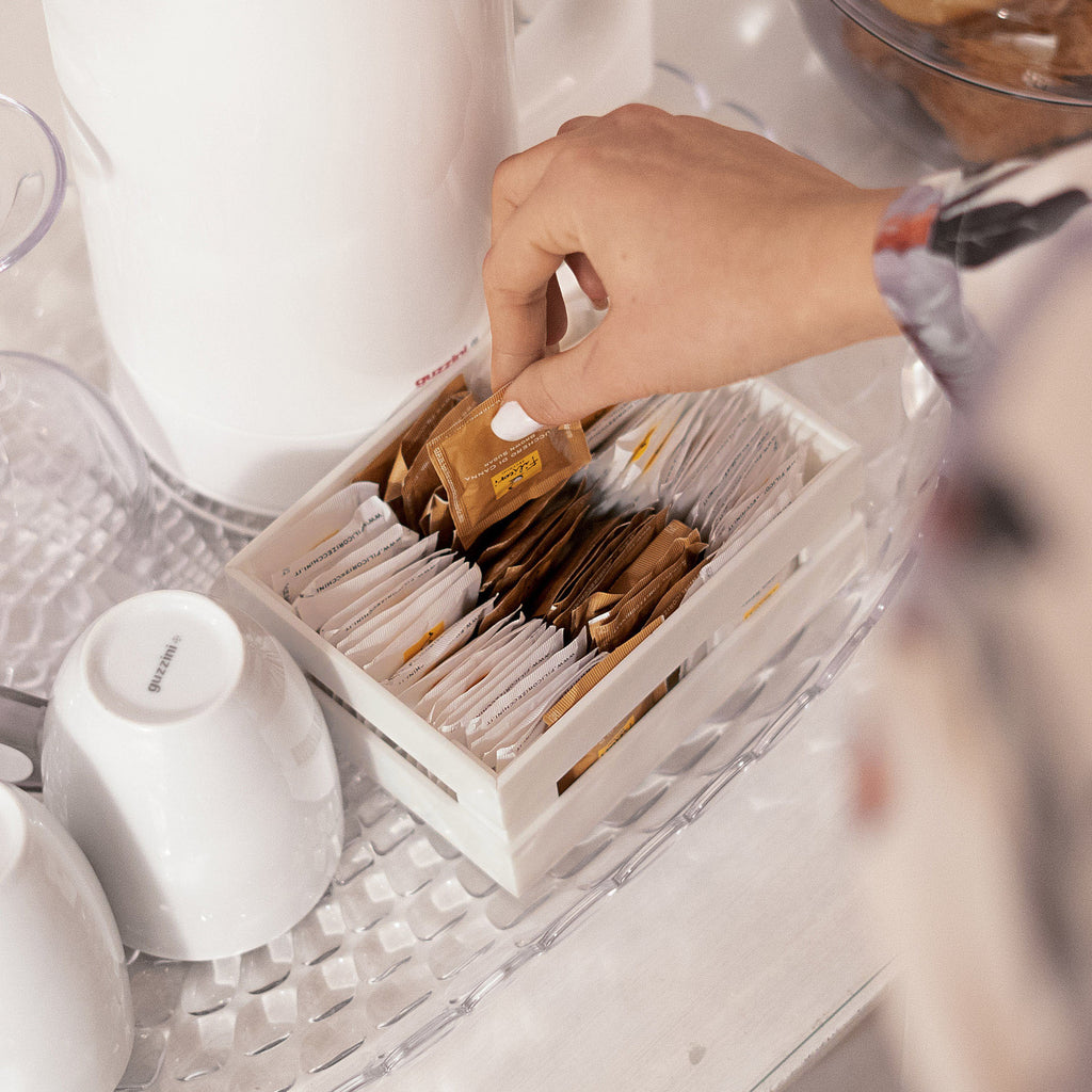 The Tidy&Store boxes are stackable and modular, lightweight, easily cleaned because they do not absorb liquids of any kind, and decidedly versatile. In fact, they can be used not only on the kitchen worktop to contain spices or condiment bottles, but also on the table for serving fruit or bread, or even on a desk to store pens and stationery, as a pocket emptier on a shelf, or to hold herb pots on the kitchen windowsill. Made from 100% recycled plastic