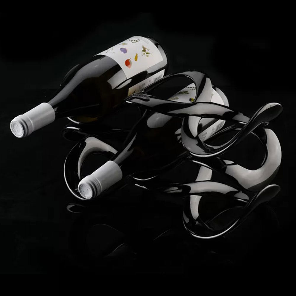 The universal bottle rack with elegant, refined design, also an attractive ornament thanks to its original form: a strip of acrylic material, sinuously interwoven to create a wine cellar able to take bottles of various sizes.