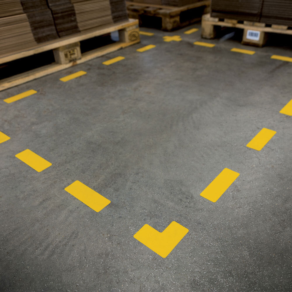 Floor marking for the identification of dangerous areas, storage spaces, walkways etc.