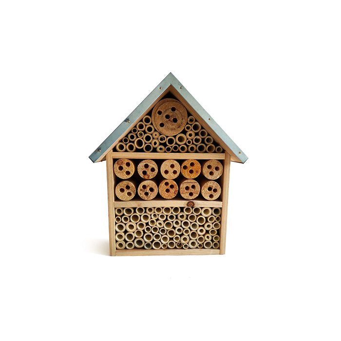 Insect Hotel 30cm Zinc Roof House Outdoor Garden Decor Large - Natural