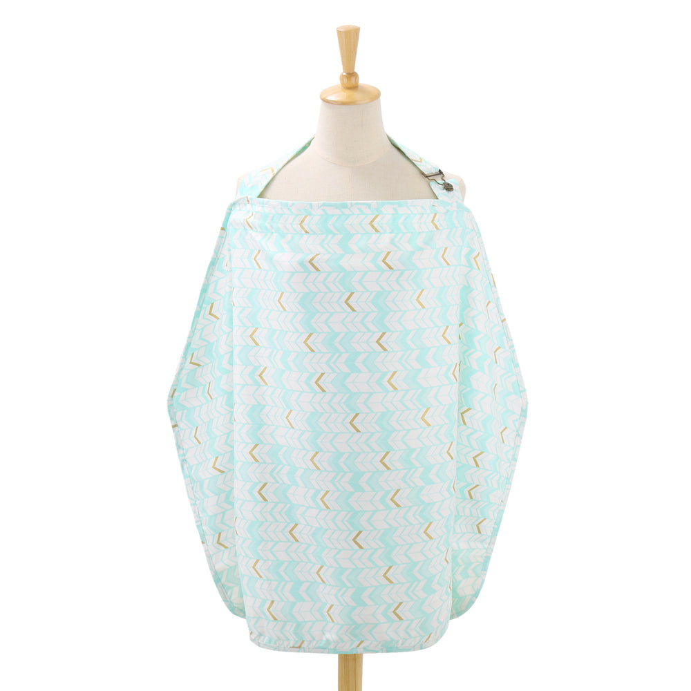 The Peanutshell 92cm Cotton Nursing Cover Mint Chevron