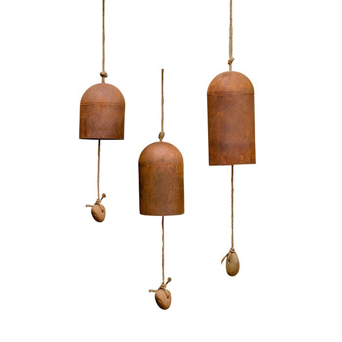 3pc Flat Bottom 12/16/20cm Bells Rust Metal Hanging Decor - Brown
