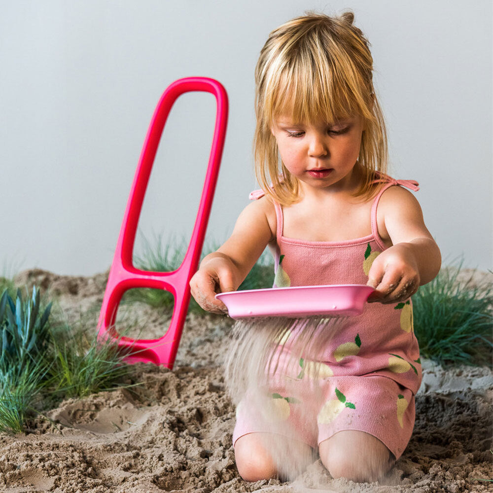 smart detachable sand sifter that will double the fun as they build forts, moats and castles.
