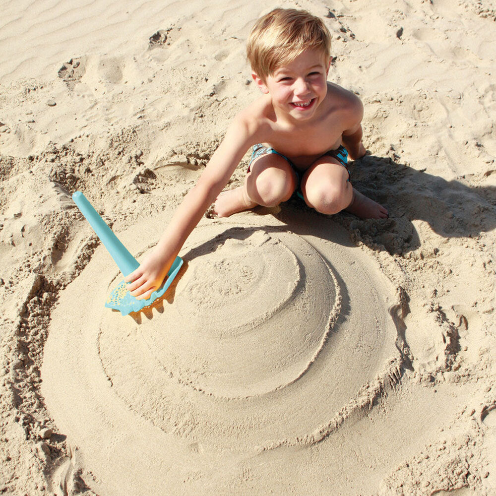 Part shovel, to help kids dig holes, build foundations and carve out moats, part sand sifter, to help remove shells and other sediment, for smooth, shapeable sand, part rake, to let kids create extra designs. The hollow handle can even be used as water funnel to finish off the coolest sandcastles ever with sand art!