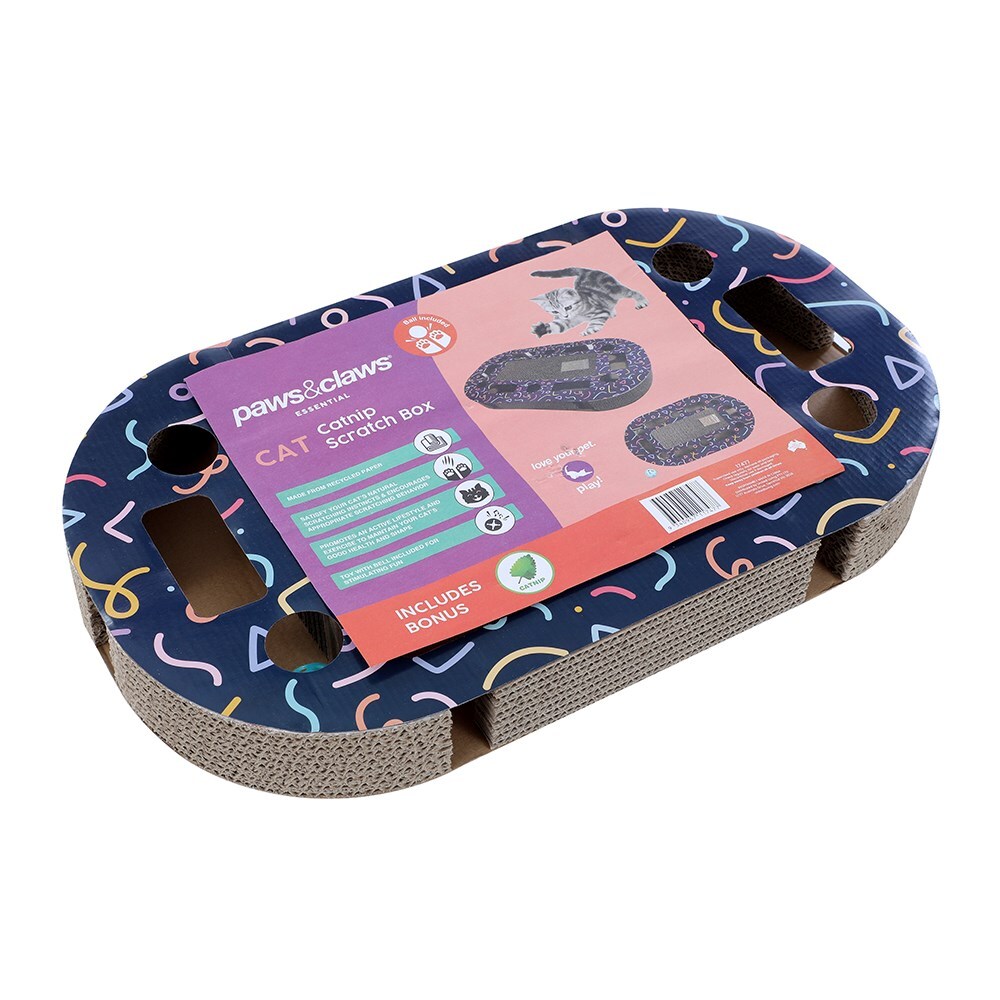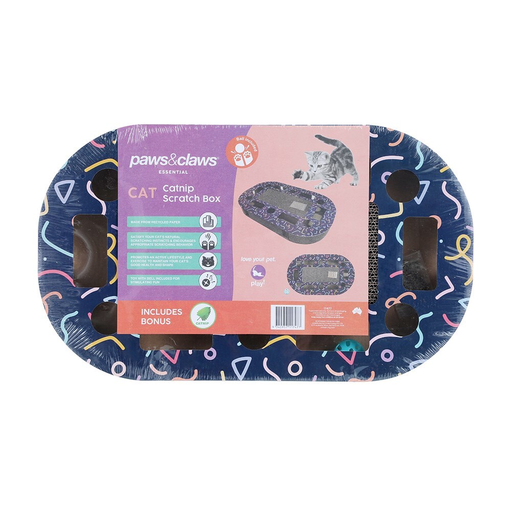 Keep your feline friends entertained all day long with our Paws & Claws Catnip Scratch Box! Our exciting design is created to satisfy your cat's natural scratching instincts and encourages appropriate scratching behaviour. It also works to promote an active lifestyle and frequent exercise to maintain your cat's good health and shape; as it comes with a toy with bell for stimulation and extra catnip to excite them.