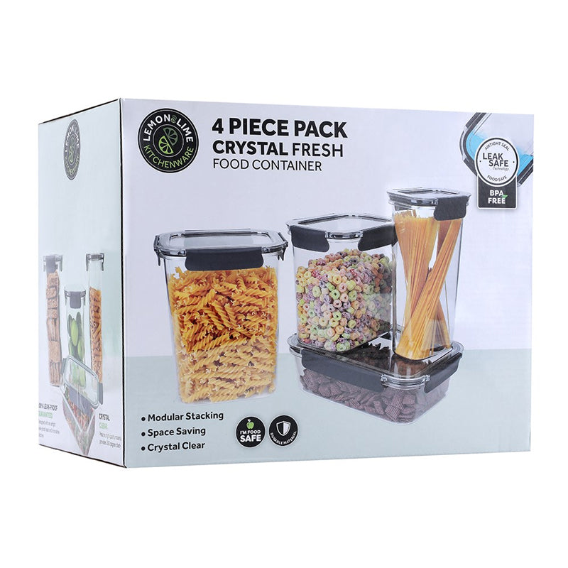 4pc Lemon And Lime 1.7/2.7/2.85/3.7L Crystal Fresh Food Container Set