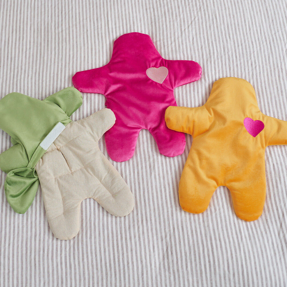 Everyone loves Herbie– so he’s back!! Herbie is our special heatable friend (who can be chilled too, if needed!). Herbie has been improved and now has a removable cover for easy washing – simply remove bag through the velcro enclosure. Get your special hug, from Herbie the Love Hug. Size: 26cm x 18cmRemove the inner pouch from the cover and place it onto a clean, dry plate (in a rotating turntable microwave only). Make sure the silicone beads are evenly dispersed inside the pouch.