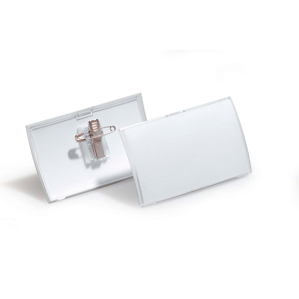 Durable 9cm Name Badge Click Fold w/ Combi Clip - White