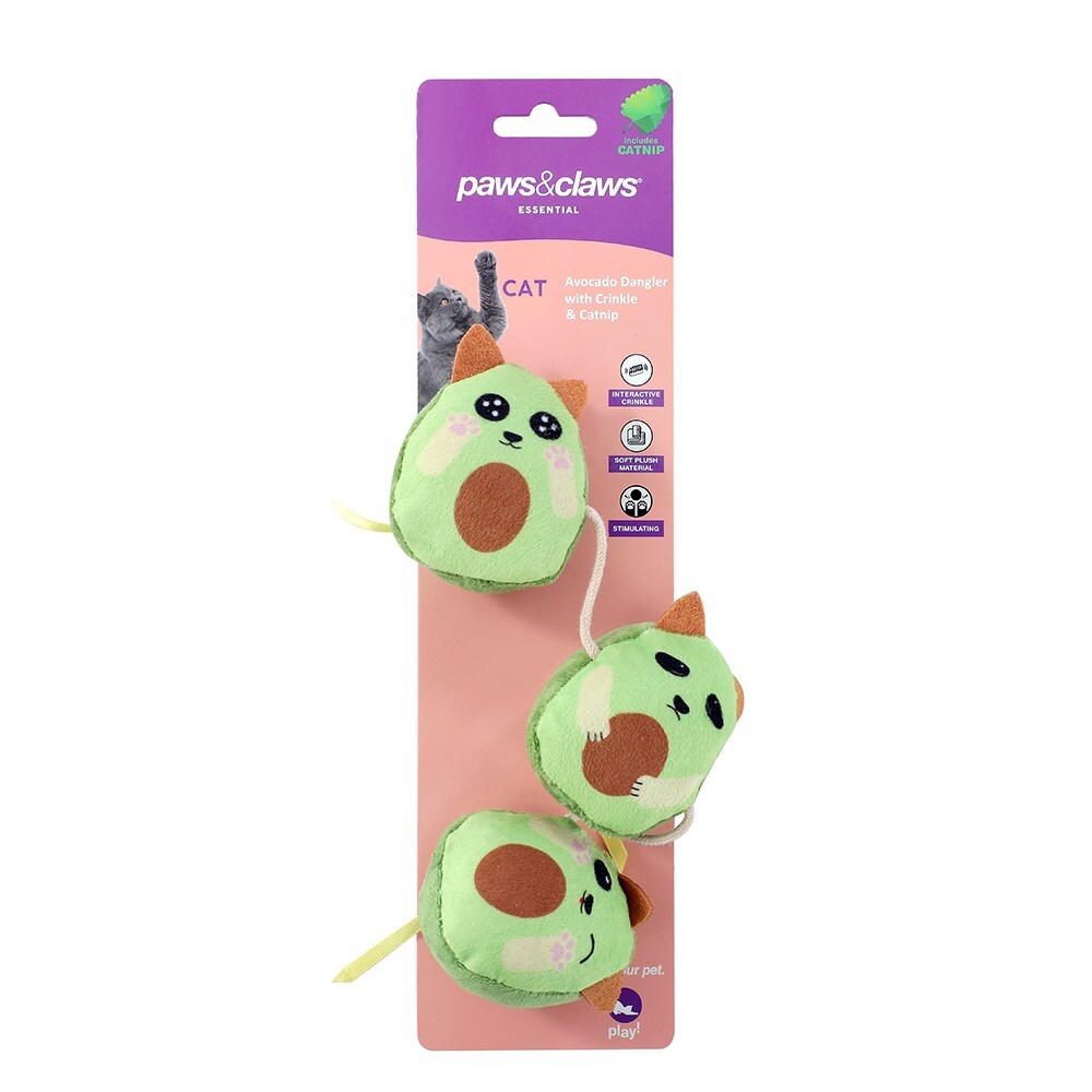 Your cat will love our Paws & Claws Plush Avocado Dangler With Crinkle And Catnip Cat Toys! Our design features fun colours, interactive crinkle and super soft plush material that your cat will love to toss around and chase after all day long. Each avocado is connected by a string so your cat will never lose them! Plus, catnip is included for extra stimulation.