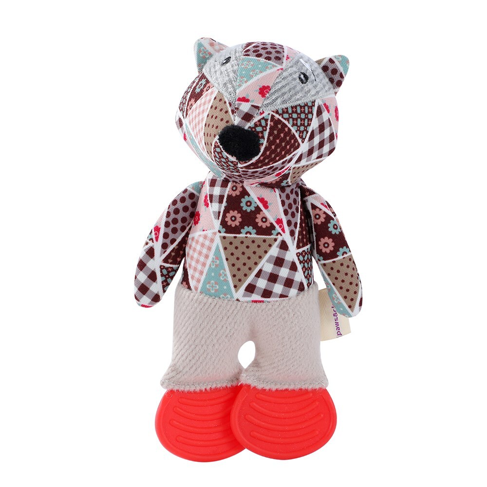 Paws & Claws Patchy Pals Stitched Up Animals Plush Fox Pet Toy W/ Tpr Feet 23x13x8cm