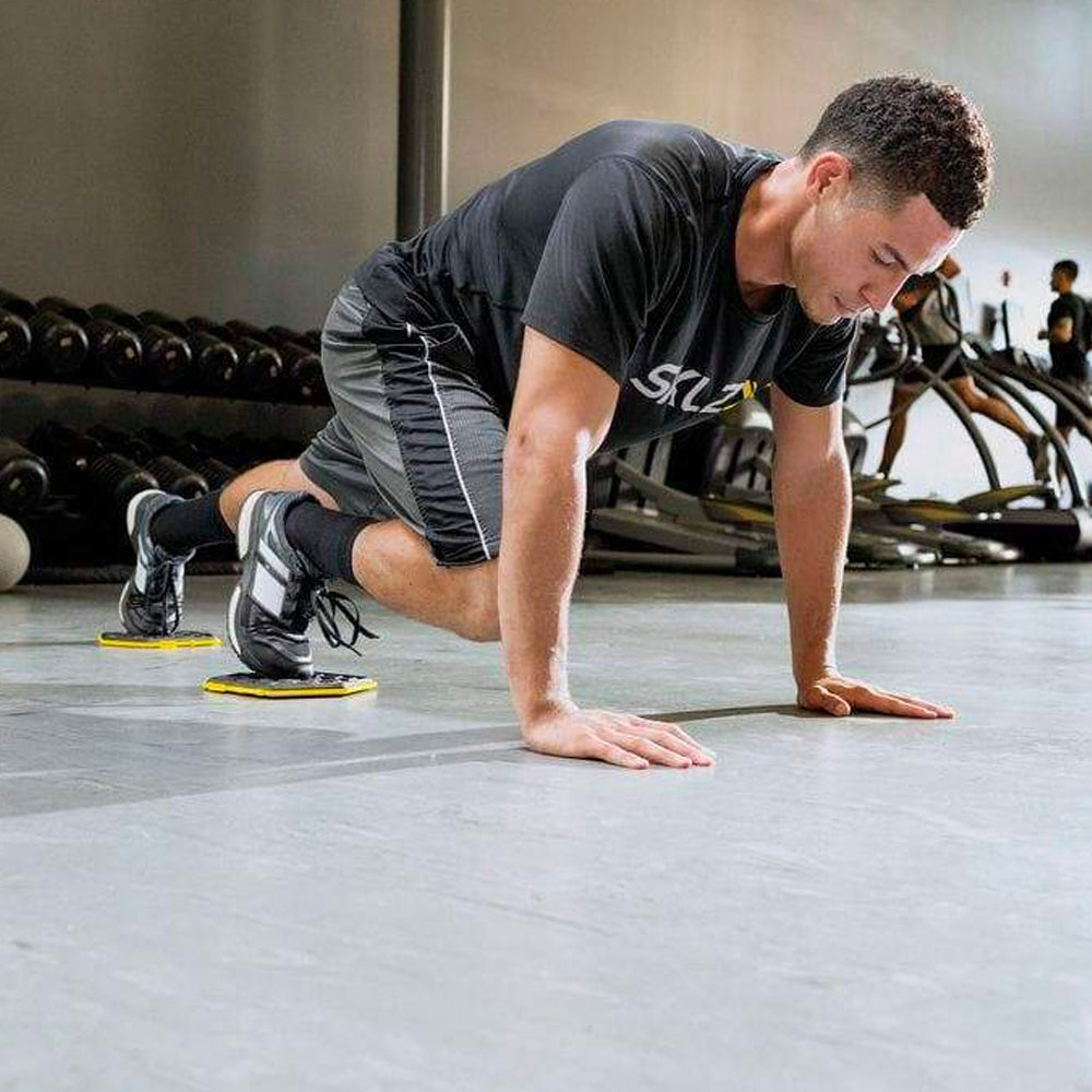 When it comes to strength, athletes know it starts with the core. Built to engage your core through a variety of movements, SKLZ Slidez are created with a low-friction, non-marking bottom that slides on virtually any surface, while a non-slip, ergonomic tread pattern provides better grip for hands and feet. Ultra-lightweight and compact, this training aid can be used for a versatile range of exercises and drills. Ideal for individual gym workouts, trainers with clients, and sports teams. Take them with you on-the-go, to the gym, and even when you travel for a full-body workout. Includes one pair of Slidez discs.