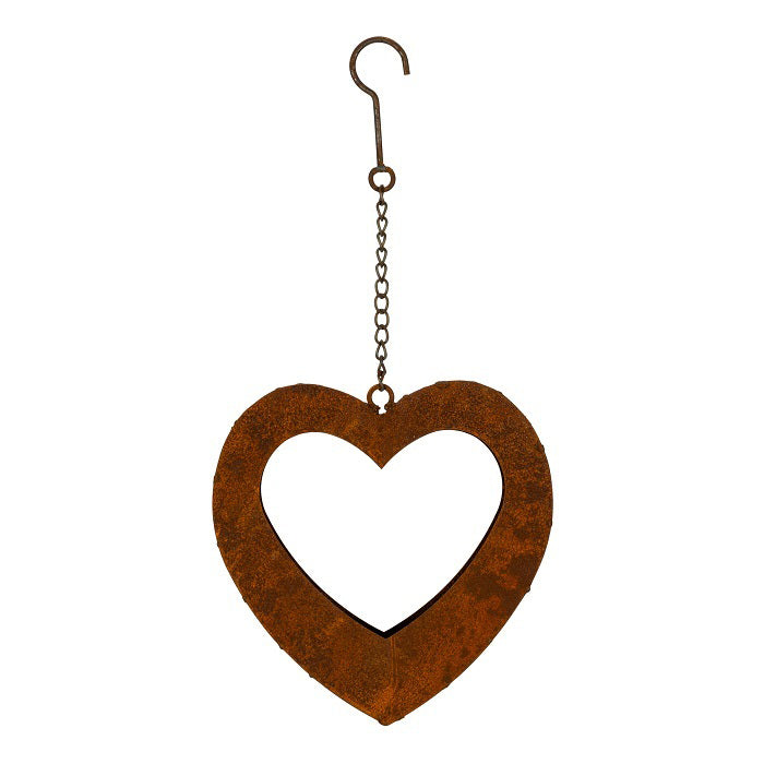 Hanging Rust Metal 28cm Heart Planter Garden Decor - Brown