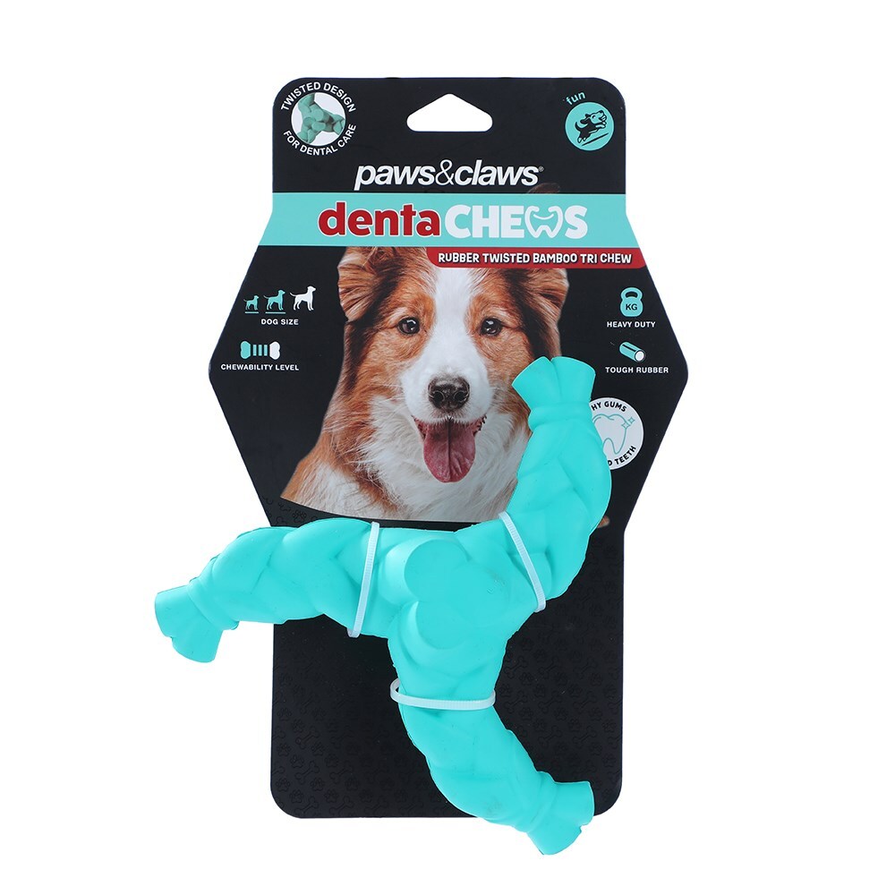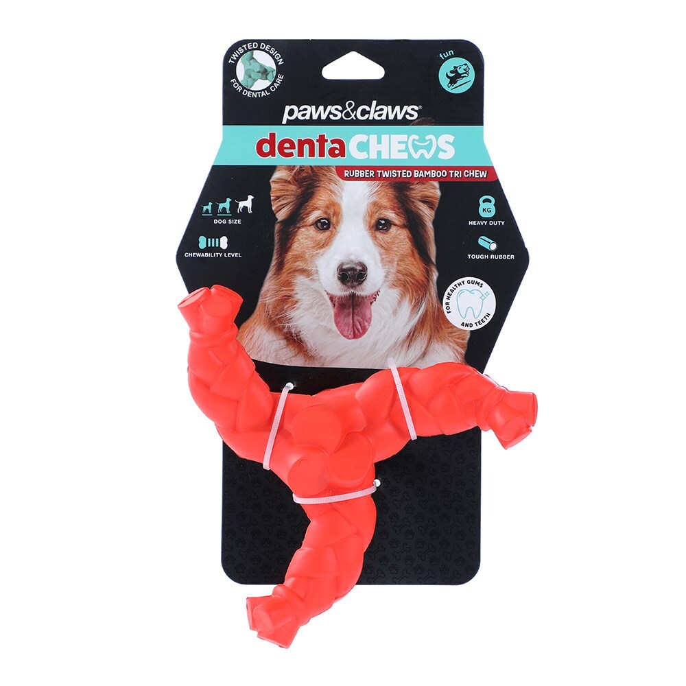 1x Paws And Claws 15.9x15.9x5.3cm Denta Chews Twisted Bamboo Tri Dog/Pet Toy Assorted