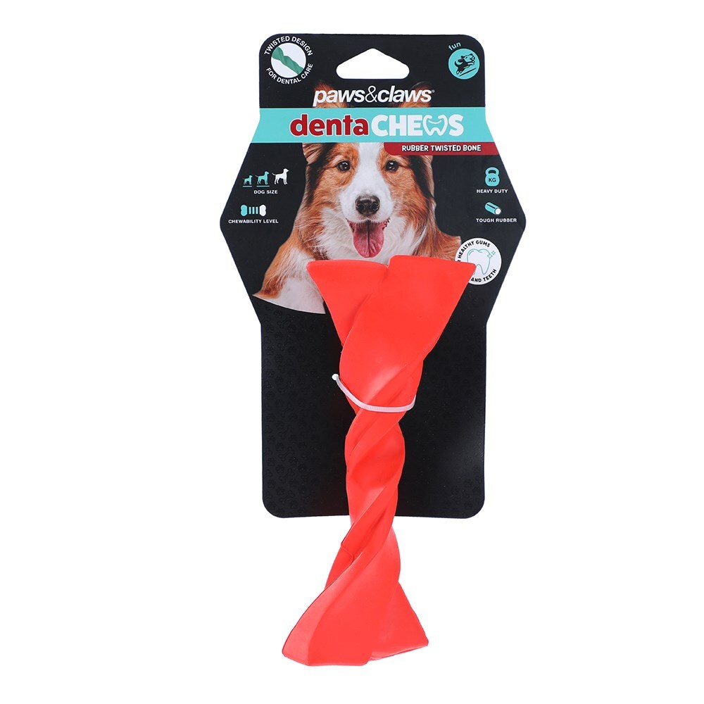 Optimise your pet's play time with our Paws & Claws Rubber Twisted Bone! This toy is perfect for active chewers as it is made from long lasting rubber. Plus, the twisted design works to clean your pet's teeth and gums during play.