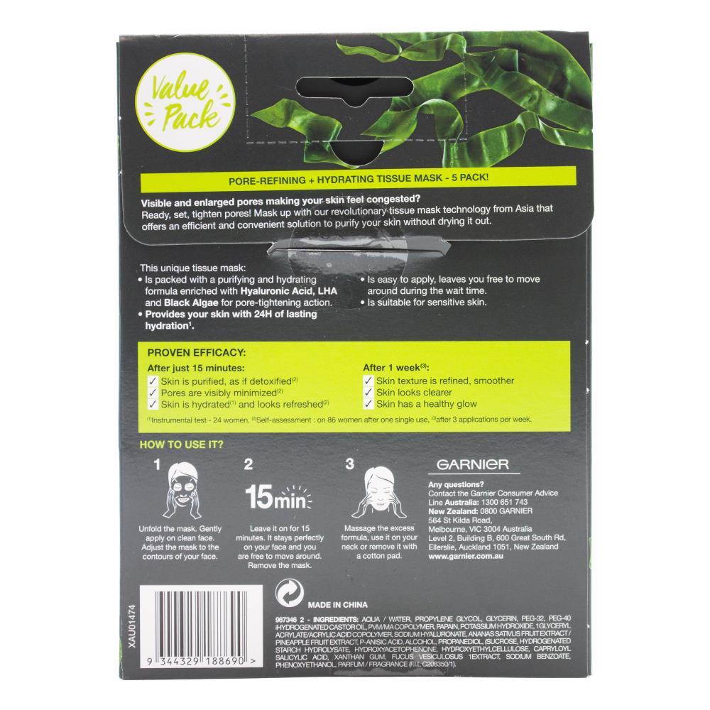 1 x 5pc Garnier 28G Skinactive Pure Charcoal Tissue Masks Black Algae