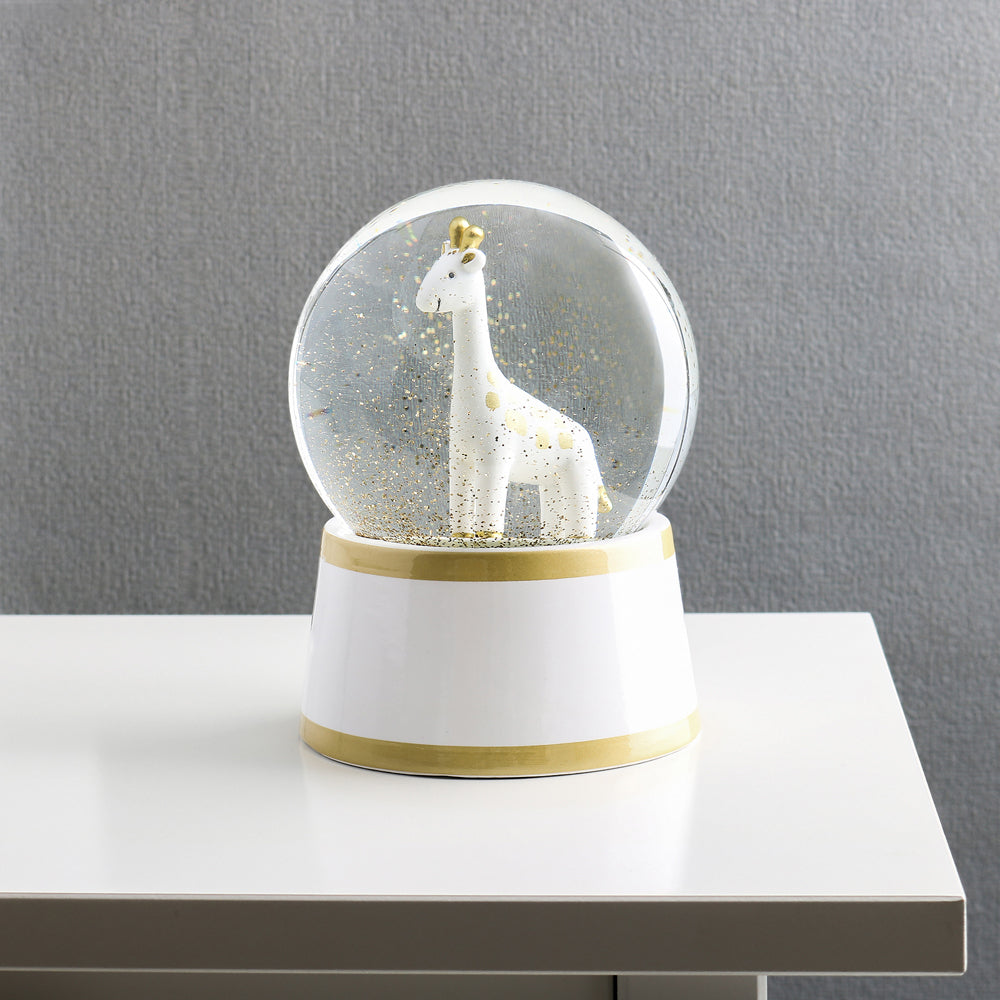 This collectible Giraffe snow globe makes a charming keepsake or holiday gift for baby. Beautifully detailed with metallic silver accents, your little one will love watching the glittery snow fall onto the playful Giraffe figurine after each shake. It’s a timeless must-have that would look wonderful in any nursery.WARNING-THIS IS NOT A TOY. KEEP OUT OF REACH OF CHILDREN. DO NOT PIACE NEAR WINDOWS OR DIRECT SUNLIGHT