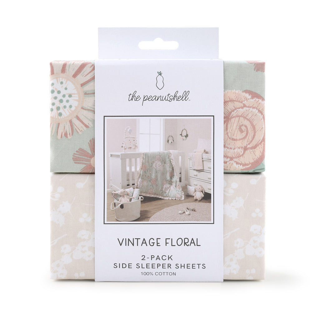 2pc The Peanutshell Baby Cotton Side Sleeper Sheets Vintage Floral 90cm