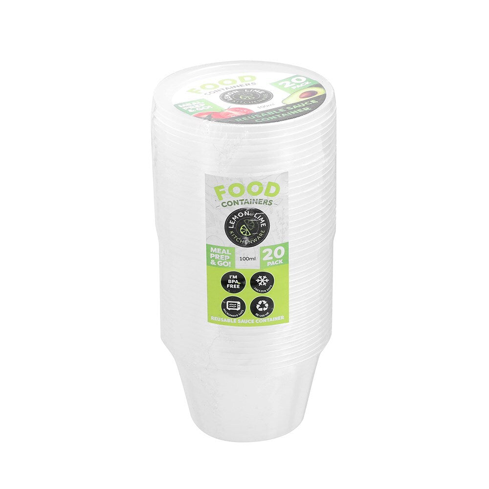 20PK Lemon & Lime Round 100ml Reusable Sauce Container w/Lid - Clear