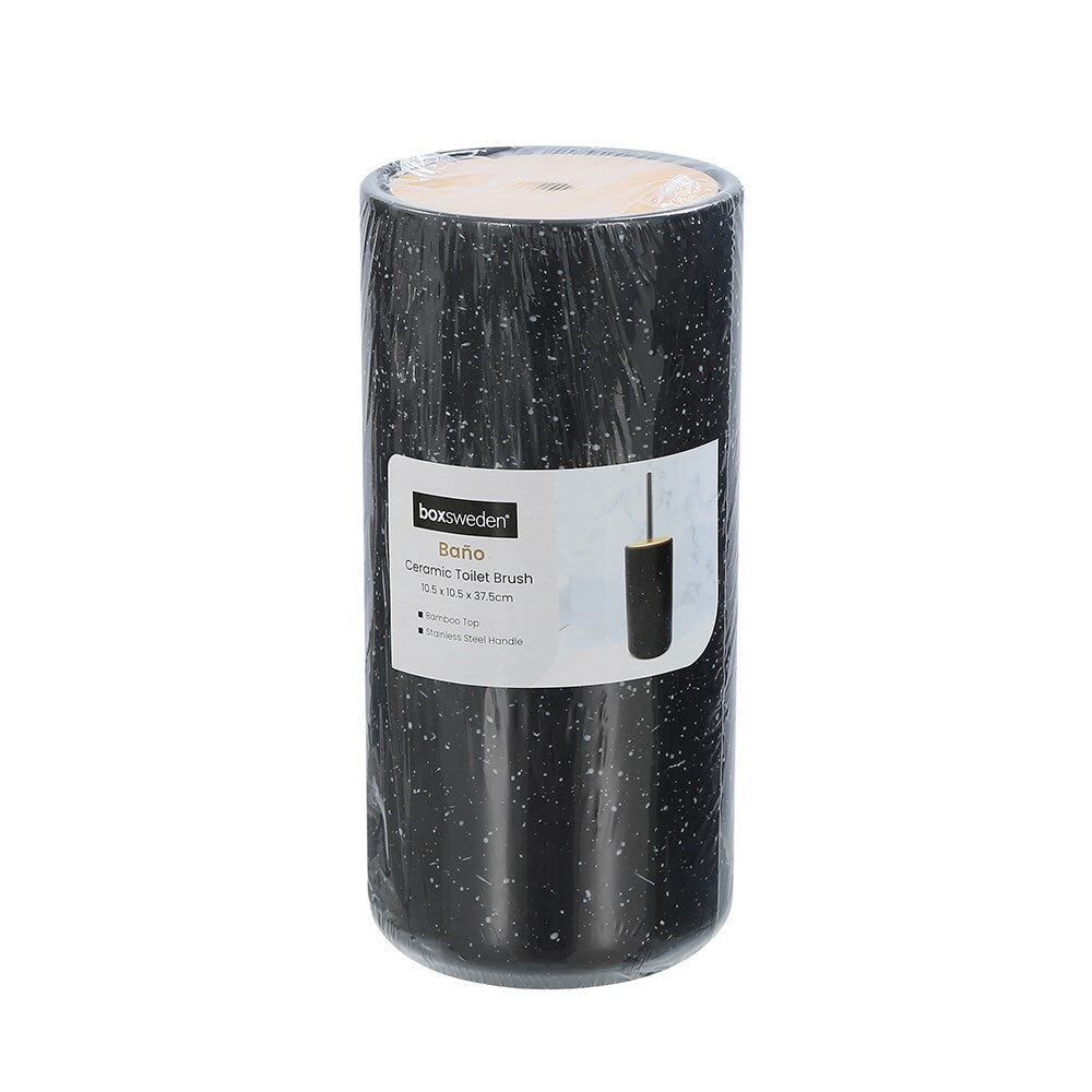 Boxsweden Bano 37.5cm Ceramic Toilet Brush Set w/Bamboo Top - Black Speckle