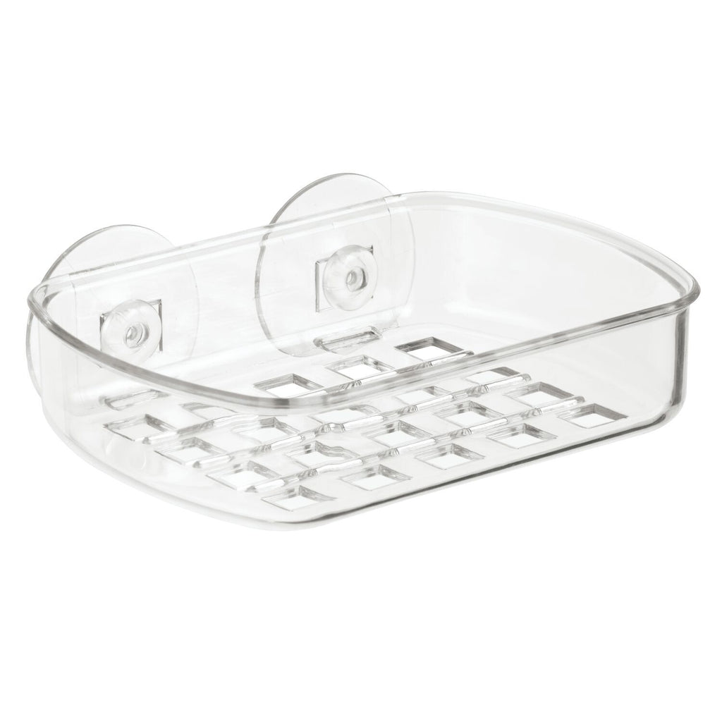 Upgrade your bathroom organization with the iDesign Suction Bar Soap Holder. Designed with style and function in mind, this tray keeps soap at hand in the sink, shower, or bathtub while also protecting surfaces from soap residue. The open-draining design provides proper airflow and allows the bar to dry more efficiently after use, while the included suction cups maintain a secure hold in wet or dry conditions so it can be placed anywhere you need additional storage. Simply push the strong suction cups into place for a powerful hold on most smooth surfaces including glass, tile, fiberglass, and some metals - no drilling required! This versatile soap saver accommodates most brands of bar soap and can also be used by kitchen, laundry room, or utility sinks. The modern design and transparent color match a variety of home and bathroom decor styles, and the durable BPA-free plastic construction stands up to every day use and is easy to clean with mild soap and water. , this soap dish creates instant storage in compact spaces.