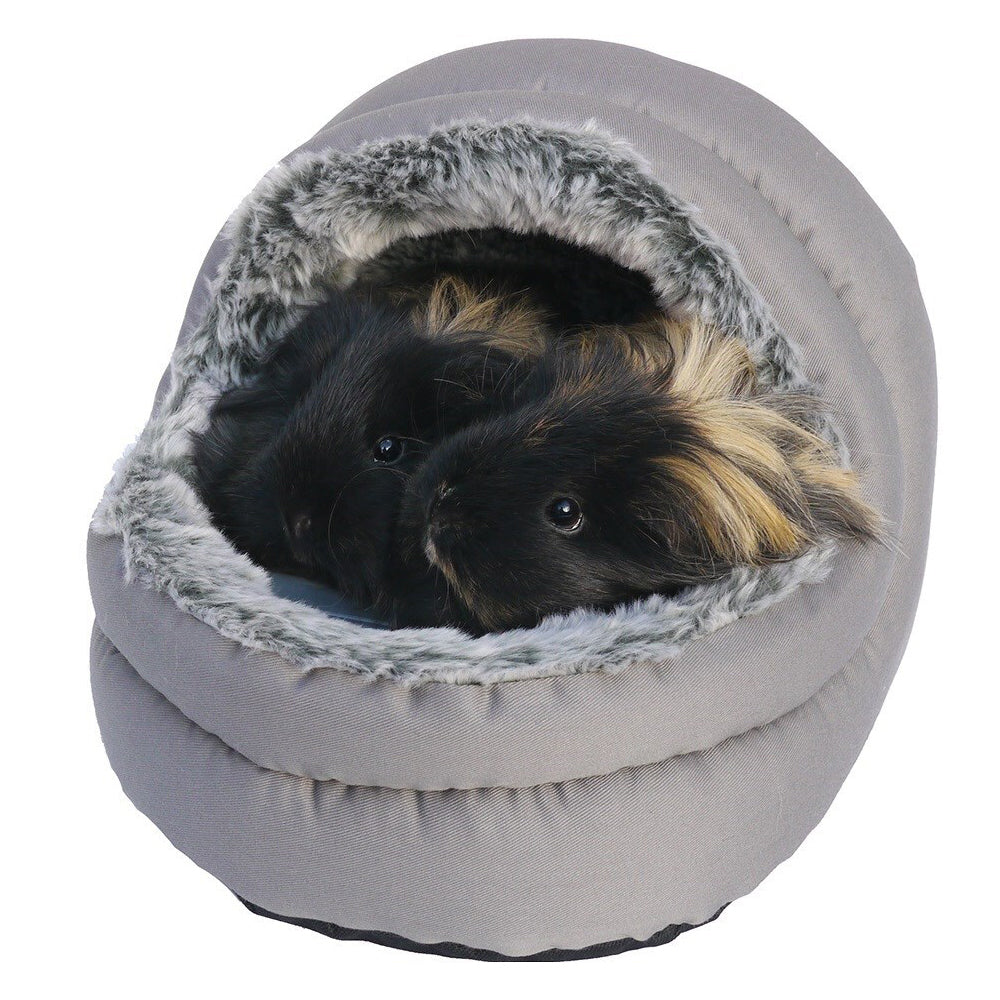 Rosewood 24x21cm Plush Lining Two-Way Ferrets/Ginea Pigs Hooded Pet Bed Grey