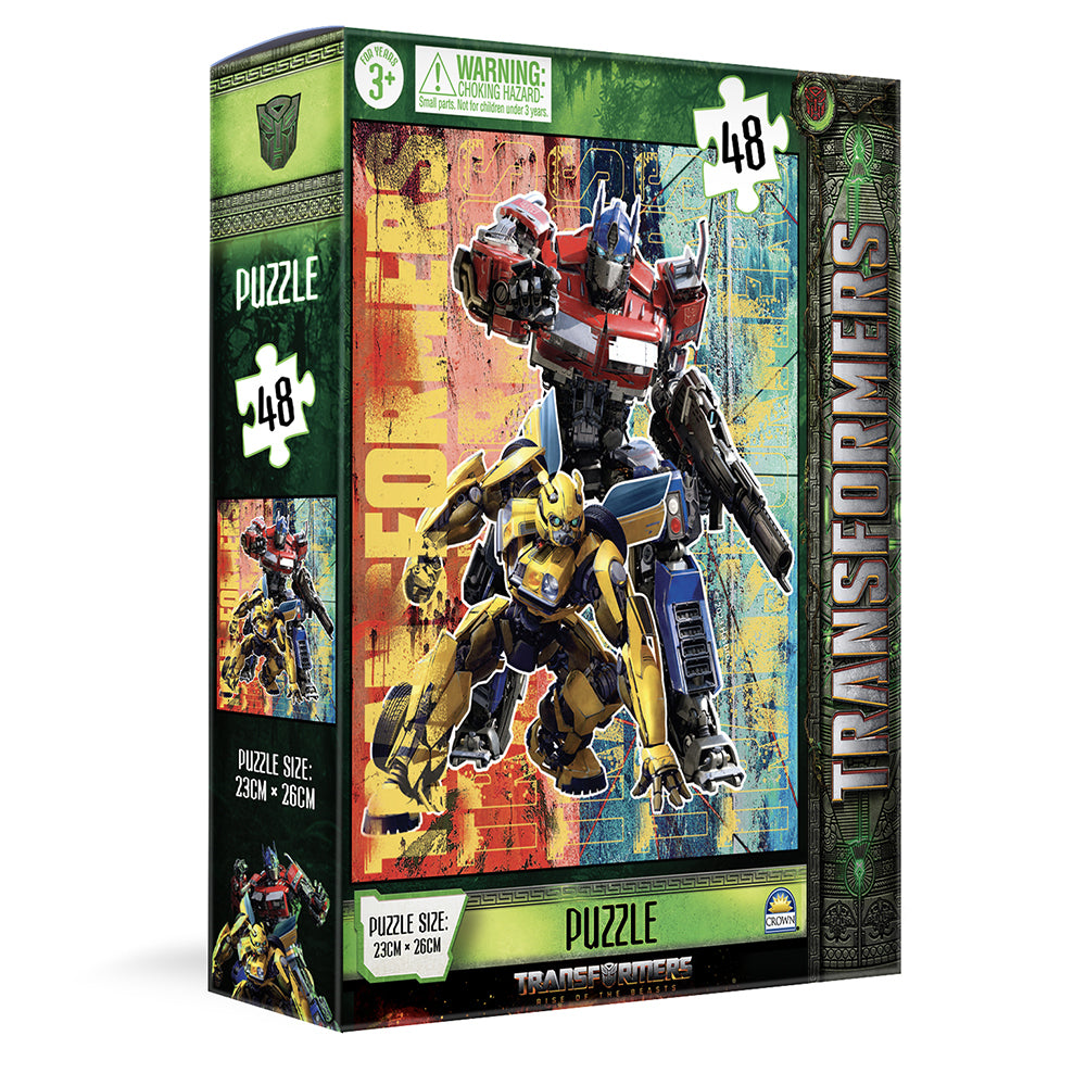 Featuring the popular robotic stars from the Transformers movie franchise Optimus Prime and Bumblebee, fans will love piecing together this incredible 48pce puzzle. From the latest Transformers instalment: Rise of the Beasts your little Transformers fan will love completing this awesome jigsaw. Puzzle measures 23cm x 26cm. Suitable for ages 3 and up.