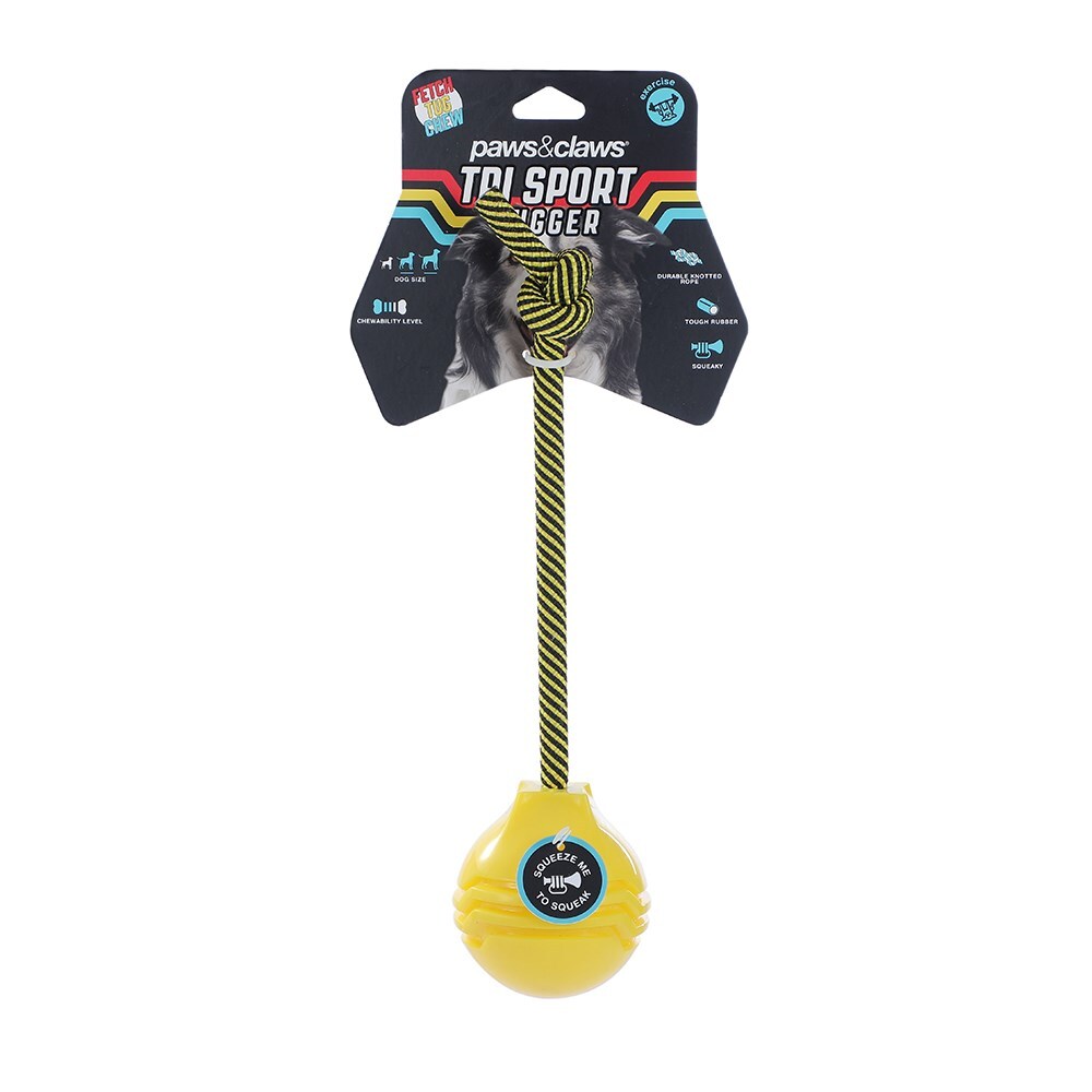 Take playtime to a whole new level with our Paws & Claws Tri-Sport Tuggers! This toy combines tugging, chewing, and throwing all into one, providing endless hours of fun for your pooch! Plus, squeaks are hidden inside for extra excitement.