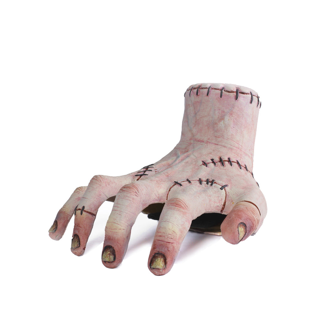 The Netflix TV series taking views by storm in 2023 is "Wednesday", based on the dark, emotionless character Wednesday Addams from the original TV series The Addams family and the superseding film series by Tim Burton. Played by actress Jenna Ortega with the unblinking eyes, "Wednesday" has the world dancing in all sorts of crazy ways and enjoying the hauntingly good story-line. Why not complete the look this Halloween and add The Thing shoulder sitter to your costume. Let this creepy, crawly hand grab the lollies when you are trick or treating!