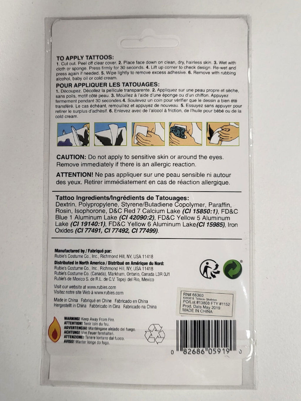 Skeleton Large Tattoo Kit Scary Halloween Costume Accessory 14+