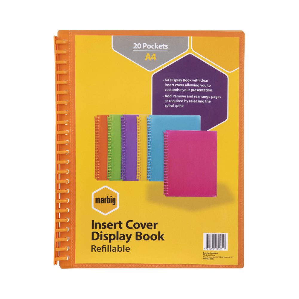Marbig 20-Pocket A4 Refillable Clearview Display Book - Translucent Orange