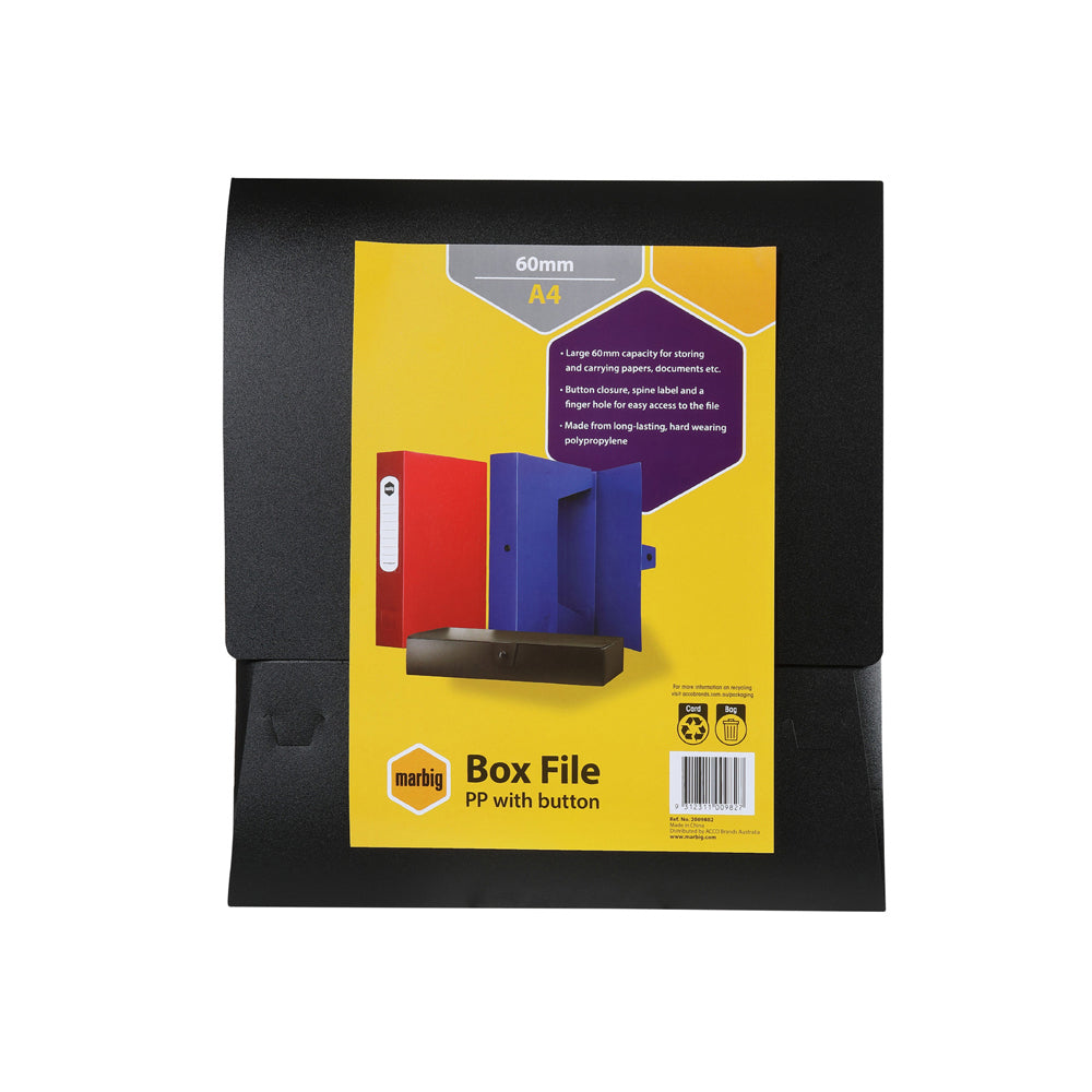 Marbig PP A4 60mm Box File w/ Button Organiser Black