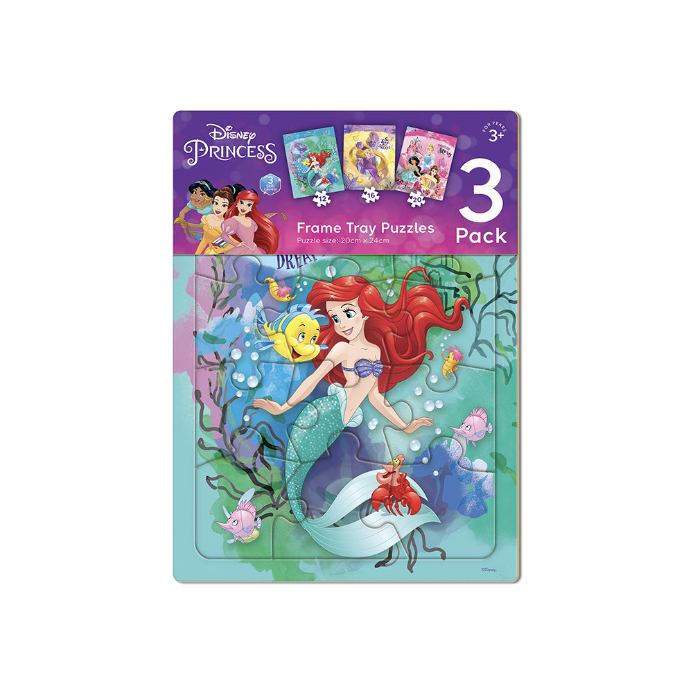 3pc Crown Disney Princess Frame Tray Kids/Children's Jigsaw Puzzle Set 3y+