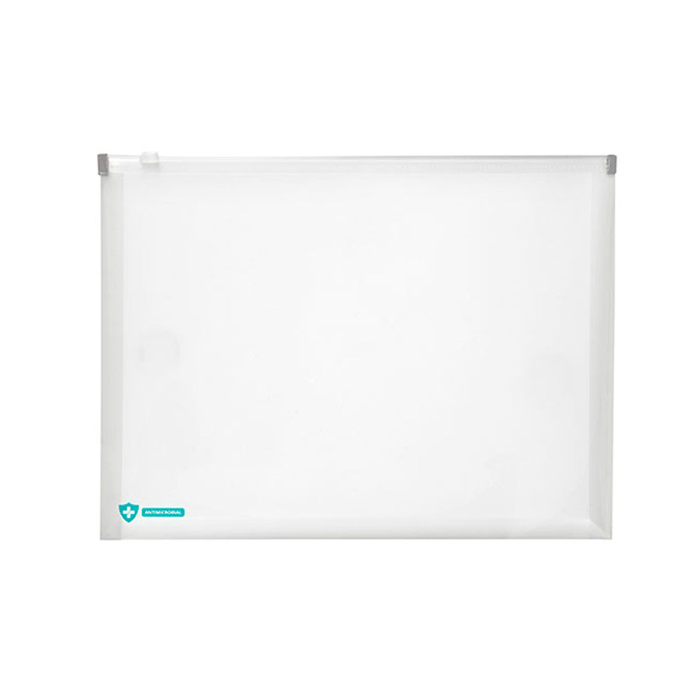 Marbig Pro Antimicrobial PP A4 Document Wallet w/ Zip Lock - Clear