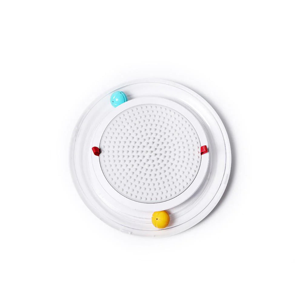 Four-in-one interactive cat toy, circuit, catnip ball, facial massage and scratcher.