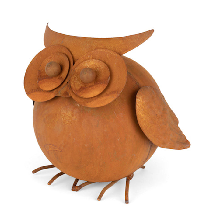 Round 16.5cm Owl Rust Metal Ornament Outdoor Decor - Large