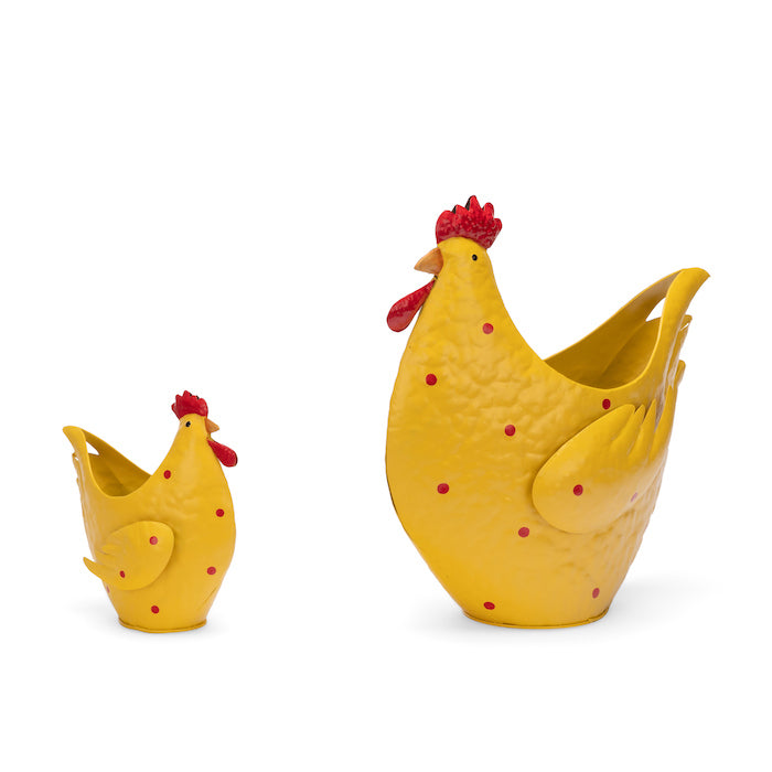 2pc Chicken Pot Planter 16/30cm Garden Ornament Decor Set - Yellow