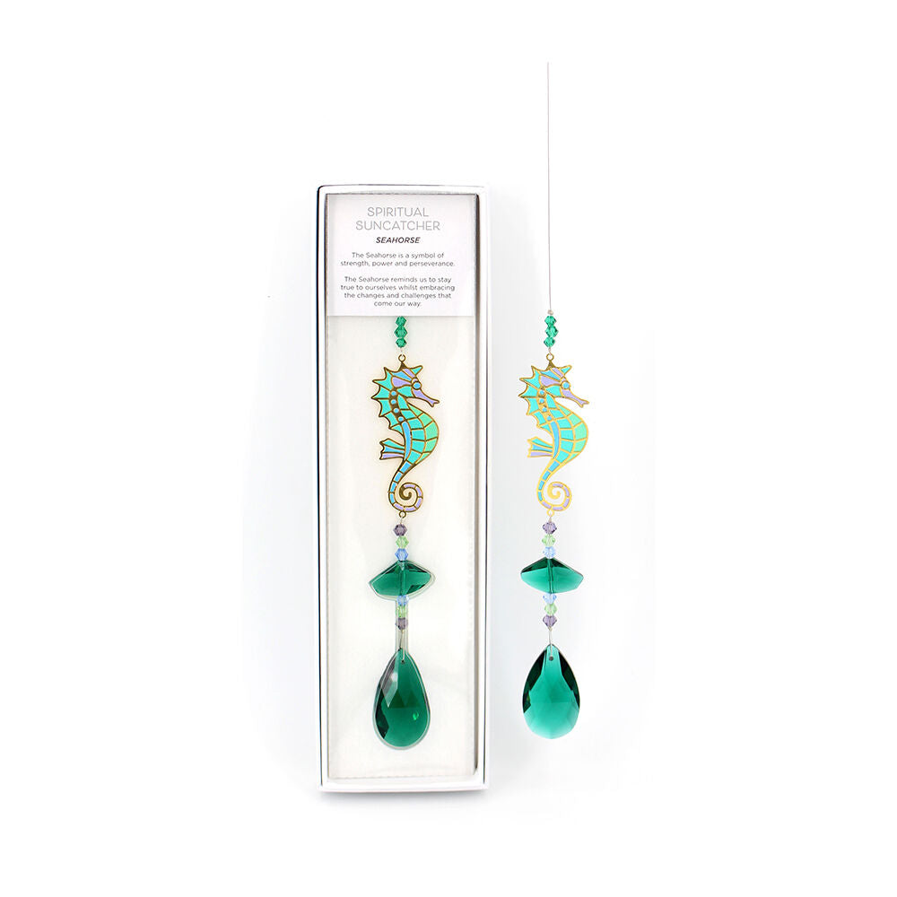 The Spiritual Seahorse Suncatcher captures the essence of the ocean, featuring a detailed seahorse design. A mesmerizing piece that reflects the beauty of marine life.