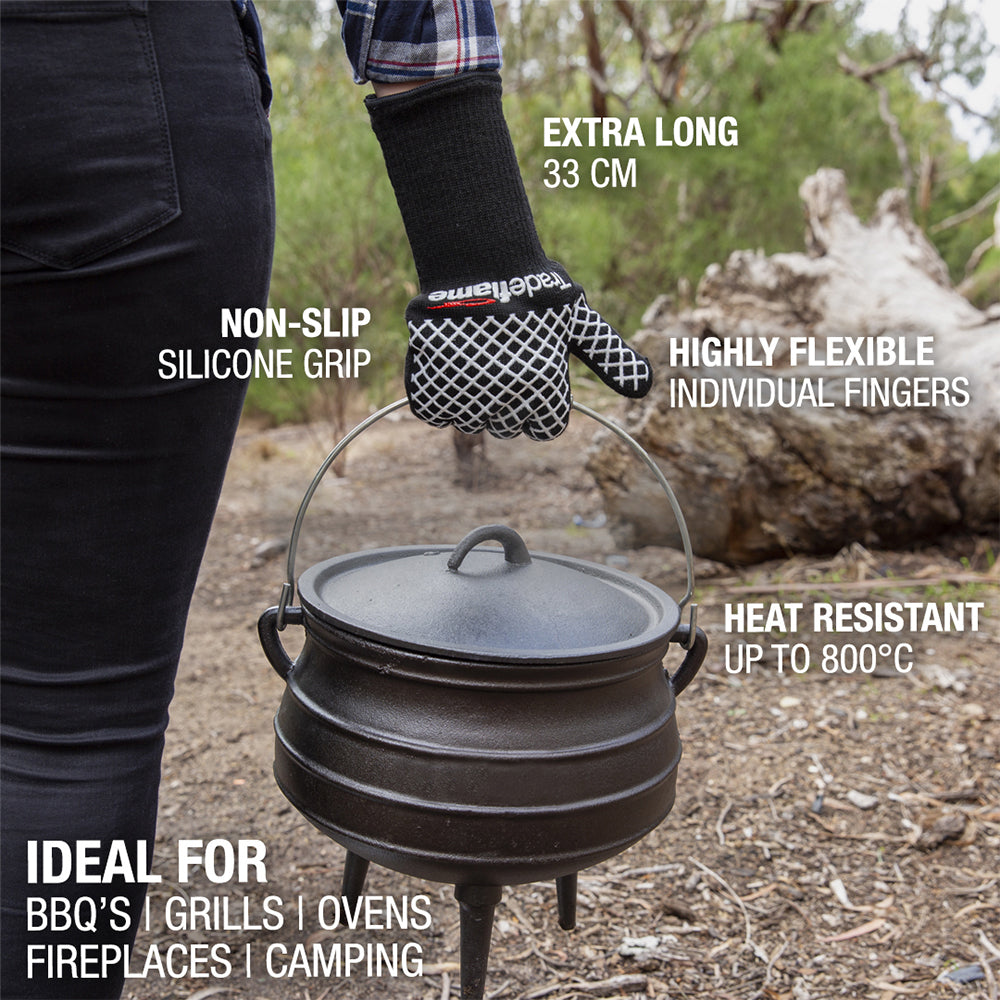 With Tradeflame Heat Resistant Gloves you can literally handle hot equipment and grill without burning your hands or losing flexibility!