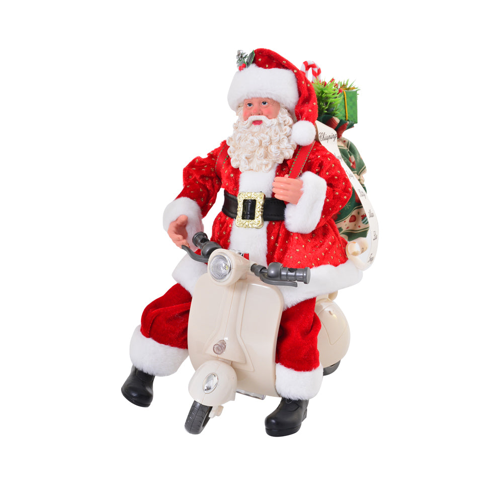 Decorate for the holidays with this charming classic Santa on scooter figurine. Featuring Santa sitting on a scooter carrying a Santa sack. A beautiful addition to any holiday décor. Makes a wonderful present for yourself or others. Perfect as a tabletop display, sitting on a shelf, or nestled on a mantel.