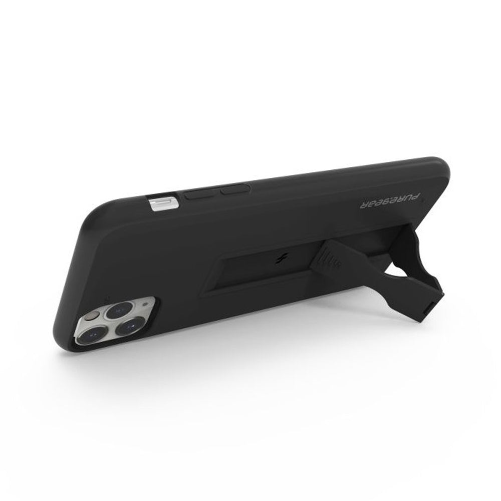 Functional grip case with built-in kickstand exclusively designed for the Apple iPhone 11 Pro Max. Kills 99.99% of most bacteria using Nano Silver technology which inhibits viral and bacterial growth. Prop your phone and watch videos hands-free.