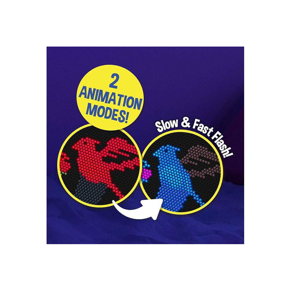 Everyone's favorite Lite-Brite is now in high definition! Bring detailed designs to life with a modernized high definition grid that has 50% more holes and 3X the pegs than the Classic grid. Create beautiful art using one of the 8 HD templates and 650 mini-pegs in multiple colors. Or use your imagination to create your own designs. Light up your art with 5 different light modes - 3 color changing patterns (fad, flash, white light) or 2 animations (slow, fast flash). Plus, the modernized oval frame is perfect in any room or social video backdrop. How will you Lite-Brite your life?