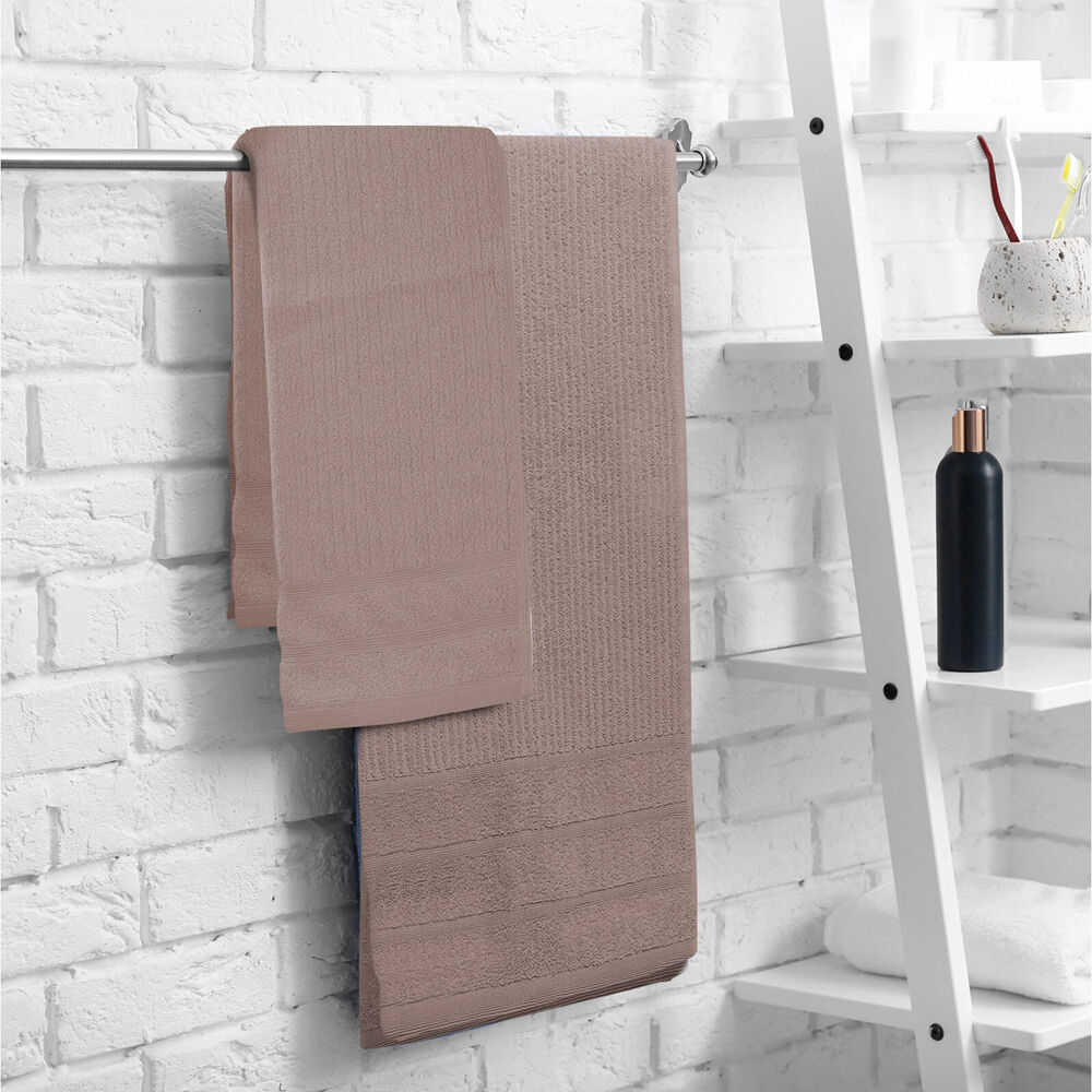 Made from 100% pure cotton, these towels offer softness, absorbency, and durability. The 600GSM weight provides a plush feel, while the vertical rib weave enhances texture and absorbency. Finished with a stylish double border, this set is available in multiple colours to complement any bathroom décor.