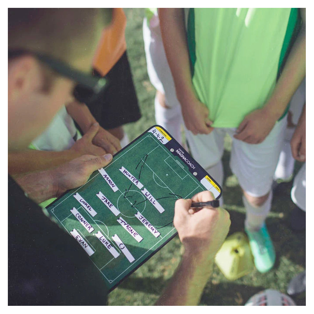 Designed by coaches for coaches, the SKLZ Soccer Magnacoach is a magnetic, dry erase board combo that allows coaches to clearly communicate lineups, formations, and tactics to their players. Whether on the field during game day or at practice, coaches and players now have a better way to visualize their play. Built to work with magnets, the set includes a marker and 24 magnets, so you can easily show your players the way to victory. The comprehensive coach- and player-friendly board is a must-have for both practice and game day.