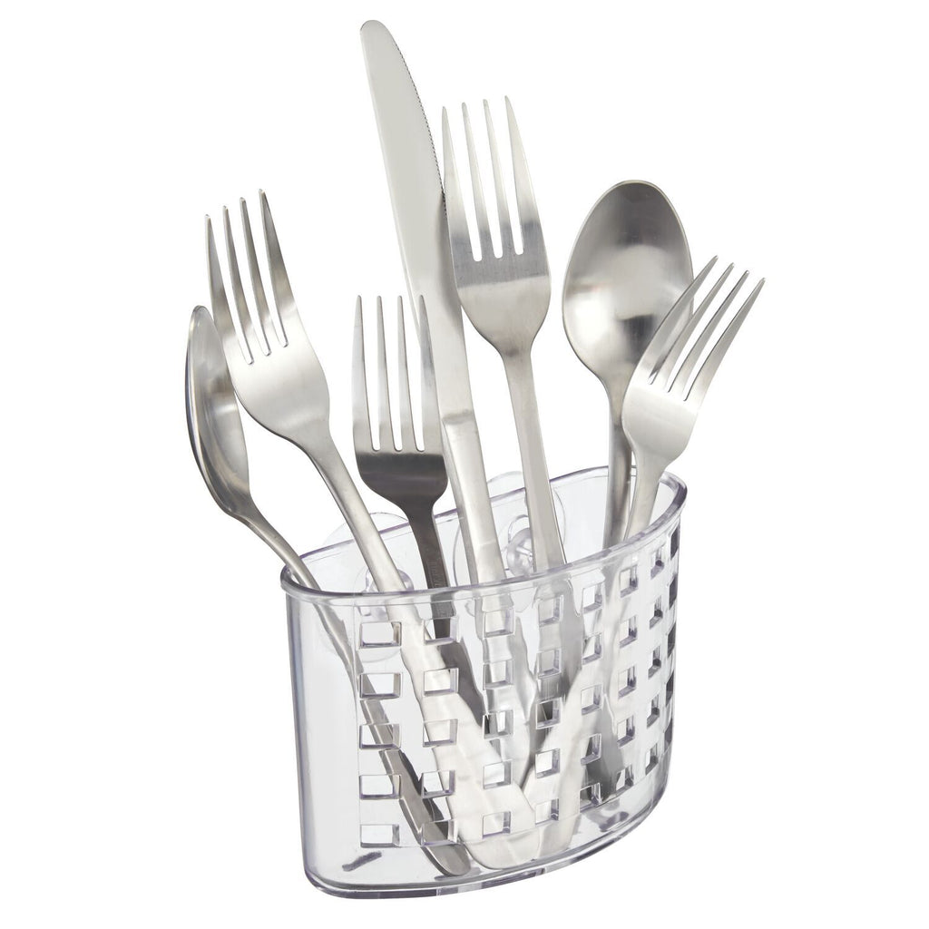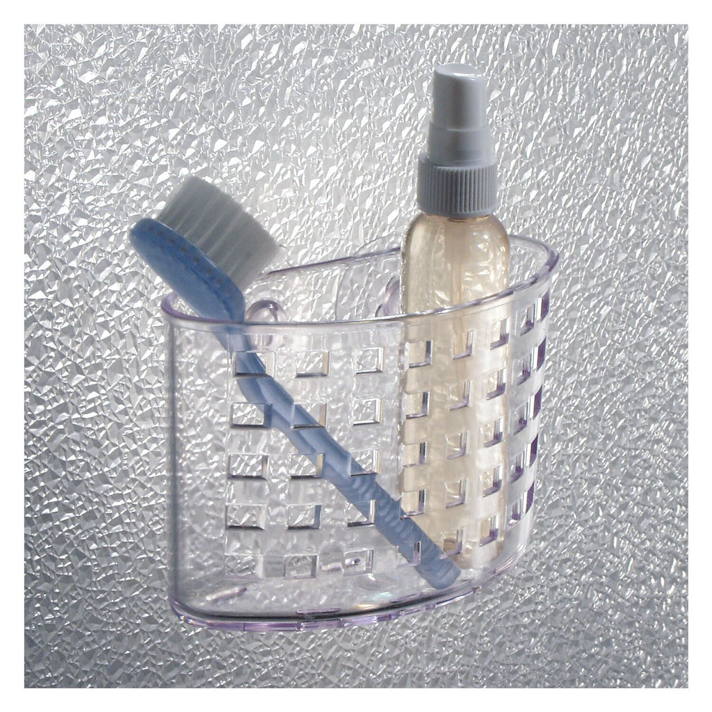 Upgrade your bathroom storage with the iDesign Suction Organizer Basket. Designed with style and function in mind, this hanging basket keeps bathroom necessities such as smaller shampoo and conditioner bottles, shower gel, soap, toothbrushes, toothpaste, razors, sponges, and more off the floor and within reach in the shower or bathtub. The open design with bottom drainage holes provides proper airflow and allows items to dry more efficiently after use, while the included suction cups maintain a secure hold in wet or dry conditions. Simply push the suction cups into place for a powerful hold on most smooth surfaces including glass, tile, fiberglass, and some metals. Featuring a modern transparent design, this versatile basket matches a variety of decor styles and can also be used in the kitchen, laundry room, or anywhere you need additional organization. The durable BPA-free plastic construction stands up to every day use and is easy to clean with mild soap and water. , this organizer caddy is ideal for use in compact spaces in the bathroom.