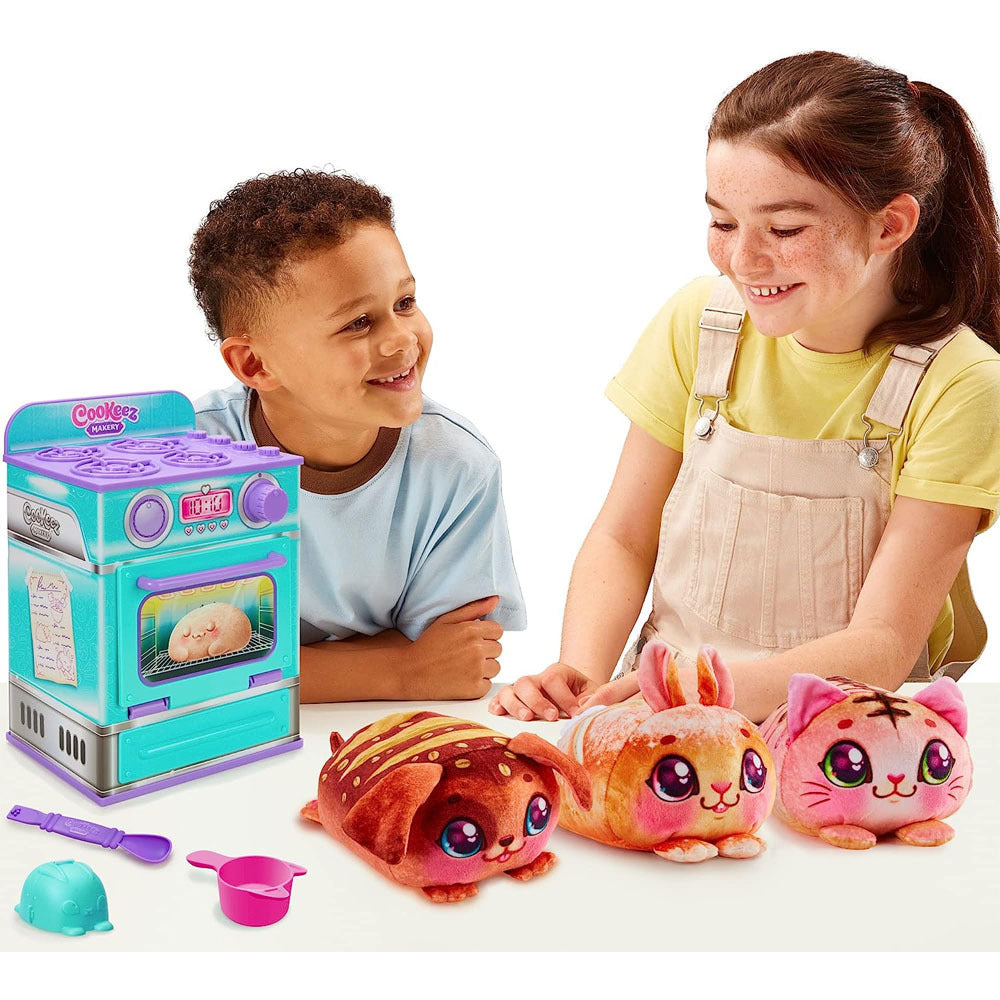 Cookeez Makery will amaze you and your child when they bake a surprise plush best friend! As they open the oven door they will discover their own warm and scented interactive plush friend in the shape of a yummy smelling baked treat!