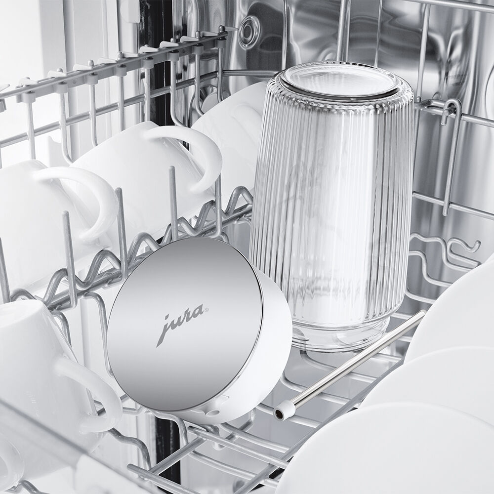 The glass milk container makes an indispensable addition for all coffee lovers who like to spoil their family and guests from time to time with a trendy flat white, latte macchiato or cappuccino. Perfectly harmonised with the typical lines of JURA design, it is easy to store in the refrigerator and connect up to the coffee machine as and when required. The milk lance is connected at just the right height to allow the milk to be drawn in and frothed with ease. The container holds 0.5 litres and is dishwasher-safe.