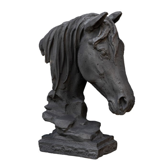 Horse Head 44cm Cast Iron Sculpture Garden Ornament Decor Large - Black